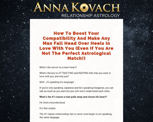 Description: Millions Of Women Worldwide Trust Astrology When It Comes To Their Love Life. Anna’s Love Compatibility Reading Helps Customers Boost Their Compatibility By Better Understanding Their Partner. Promote This Unique Product And Earn An Easy $40 Per Sale.