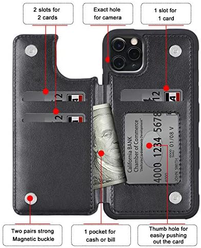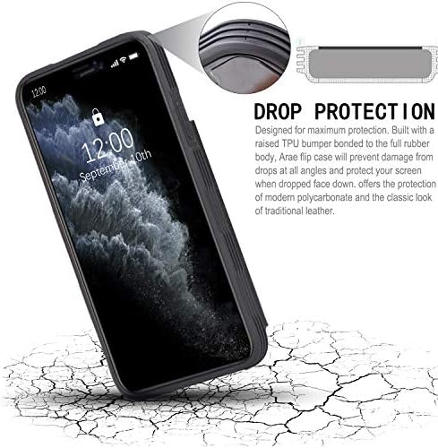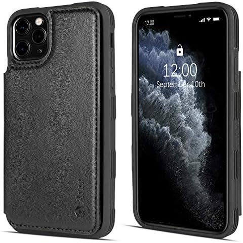 Arae Case for iPhone 11 pro max PU Leather Wallet Case with Card Pockets Back Flip Cover for iPhone 11 pro max 2019 6.5 inch (Black)
