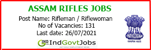 ✅ How to Apply: Eligible Interested candidates apply online through Assam Rifles official website (assamrifles.gov.in). The candidates will fill the requisite details as prescribed in the application for. The last date for submission of online applications is 26/07/2021.