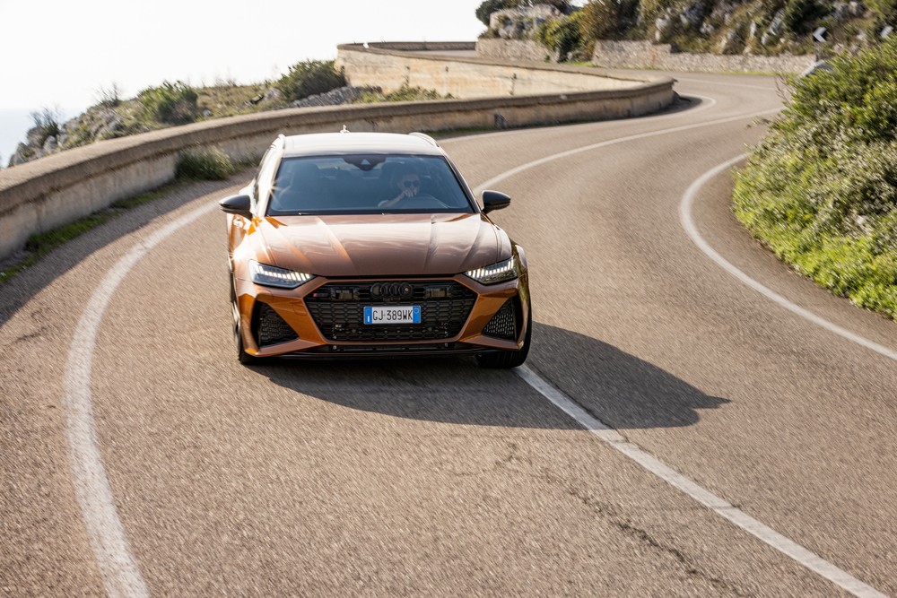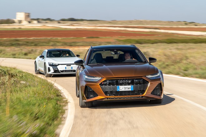 Puglia, sun, heat. We are in the province of Lecce and the test roads run along the sea, offering the perfect scenario to test two flagships of the RS range: there is no shortage of curves, some are blind and narrow, others wider. You go up and down, excellent opportunities to test on the one hand the promised improvements in resetting the turbo lag of the RS 6 or the instantaneous torque of the e-Tron GT, on the other hand the performance of the brakes that reach the carbon-ceramic system from buy as an option (here it was).