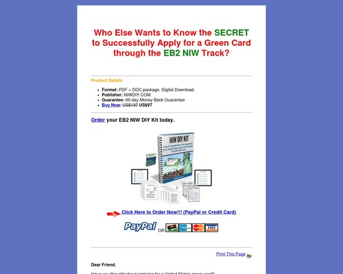 Description: Earn Over $45 Per Sale. Ben’s Niw Diy Kit Is A Do-it-yourself Kit On The Application For A United States Green Card Through The Eb2 Niw Track. Affiliate Materials: Http://niwdiy.com/affiliates/affiliates.php