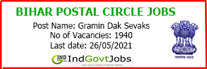 Bihar Postal Circle GDS Recruitment 2021: Indian Put up, Bihar Put up Workplace invitations on-line functions from minimal 10th 12th class handed candidates for the choice and engagement to the posts of Gramin Dak Sevaks (GDS) underneath Bihar Postal Circle. The time limit for submission of GDS On-line Registration is 26th Might 2021.