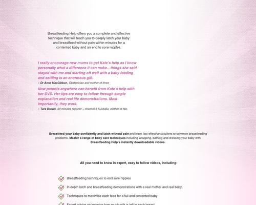Description: Breastfeeding Help By Australian International Board Certified Lactation Consultant Kate Hale. How To Care For A New-born, Including How To Deeply Latch Your Baby And Breastfeed Without Pain Within Minutes For A Contented Baby And An End To Sore Nipples.