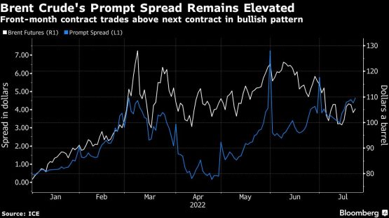- Brent for September settlement edged lower by 0.3% to $103.55 a barrel at 8:23 a.m. in New York.