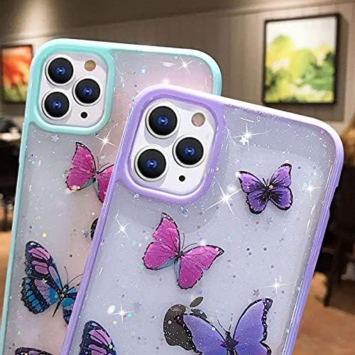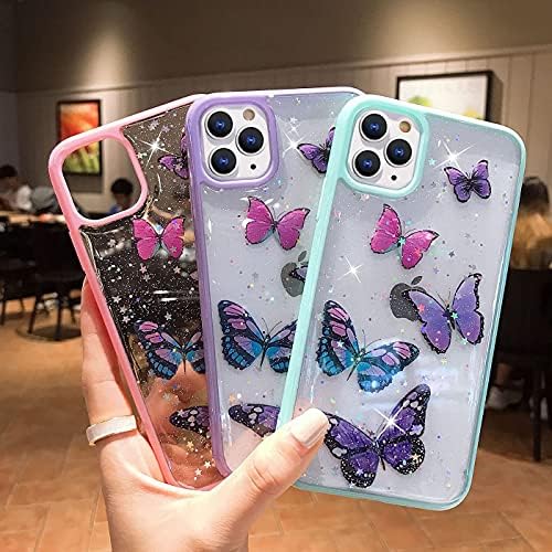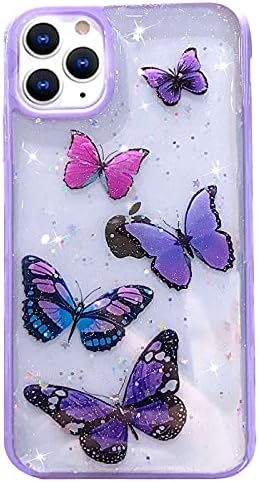 Butterfly Bling Clear Case Compatible with iPhone 11 Pro Max, wzjgzdly Glitter Case for Women Cute Slim Soft Slip Resistant Protective Phone Case Cover for iPhone 11 Pro Max 6.5 inch – Purple