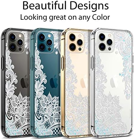 Coolwee Clear Glitter Compatible with iPhone 12 Pro Max Case Thin Flower Cute Crystal Lace Bling Women Girls Floral Plastic Hard Back Soft TPU Bumper Protective Cover Slim Fit Mandala Henna