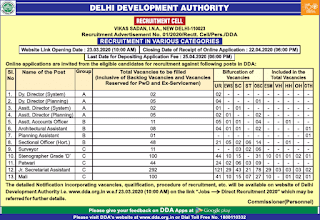 DDA Recruitment 2020 notification for Fresher, Experienced Indian Citizens, who have qualified 10th 12th pass, Matriculation, Degree and Posts graduates for recruitment of various levels of vacancies on Direct recruitment and deputation basis. The Delhi Development Authority (DDA), Recruitment Cell, New Delhi invites online applications from the eligible candidates for recruitment against following Group A, Group B and Group C posts in DDA. The DA Recruitment Advertisement No 01/2020/Rectt. Cell/Pers./DDA The last date for submission of online registration is 15th May 2020.