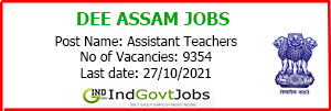 Assam Teacher Recruitment 2021 dee.assam.gov.in: Government of Assam, Office of the Directorate of Elementary Education (DEE), Assam invites online applications from the Citizens of India as defined in Article 5 to 8 of the Constitution of India and qualified in Assam TET conducted by Elementary Education Department, Assam, for filling up of 7242 vacancies of Assistant Teacher of LP Schools and 2112 of Assistant Teacher, Science Teacher, Assamese Language Teacher and Manipuri Language Teacher of UP Schools under the Directorate of Elementary Education, Assam. The last date for registration of online applications is 27th October 2021.