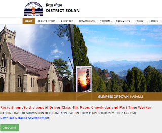 HP Solan Govt Jobs 2021: Office of the Deputy Commissioner Solan, District Solan, Himachal Pradesh invites online applications for direct recruitment of Driver, Peon, Chowkidar and Part Time Worker posts. The closing date for submission of online applications is 30th June 2021.