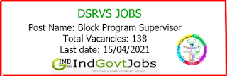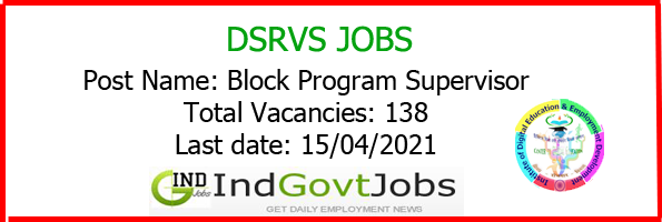 DSRVS Recruitment 2021 for the submit of Block Program Supervisor: Digital Shiksha and Rojgar Vikas Sansthan (DSRVS) invitations on-line purposes from eligible Indian Residents for recruitment of Block Program Supervisor for filling up 138 vacancies. The final date for registration of on-line purposes is 15th April 2021.