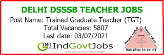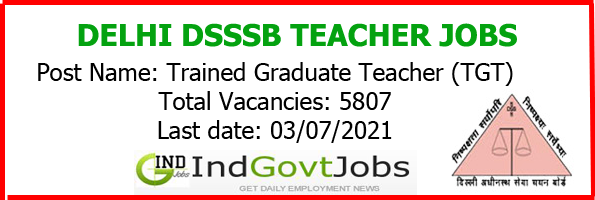 DSSSB TGT Recruitment 2021: Government of NCT of Delhi, Delhi Subordinate Services Selection Board (DSSSB) invites online applications for recruitment of Trained Graduate Teachers (TGT) under different departments. The DSSSB TGT 2021 online registration process will be start from 4th June 2021 to 3rd July 2021.