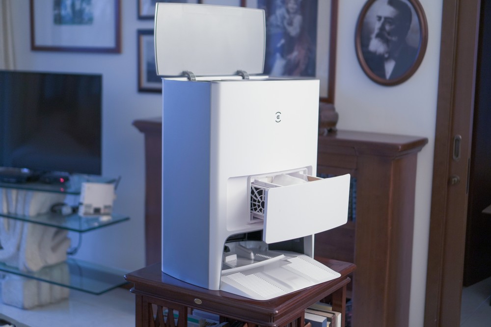 The washing functions thanks to the two mops are those that are required in 2023 for such a high-end robot. The two mops exercise one 6 Newton pressure on the floor and they spin up to 180 times per minute in order to clean thoroughly and also remove residues of dry liquids (wine, fruit juice, mud). An optimal cleaning which, although it does not really allow you to replace a scrubber dryer, however allows you to have clean surfaces in a completely automatic way.