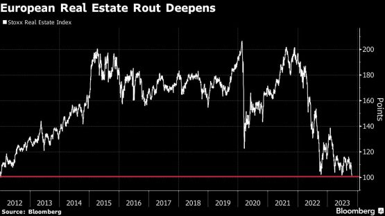 The Stoxx 600 Real Estate Index — which tracks companies like German residential landlord Vonovia SE, UK office firm British Land Co. Plc and shopping mall group Unibail-Rodamco-Westfield — fell 2.0% on Monday as bond yields edged up, putting it on course for its lowest closing price since January 2012.