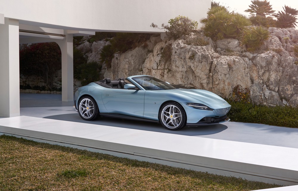 Quindi, al posto del tetto pieghevole in metallo, troviamo una capote che può essere aperto e chiuso in 13,5 secondi ad una velocità massima di 60 km/h. I tecnici di Maranello hanno lavorato molto nello sviluppo di questo elemento della Roma Spider per offrire agli occupanti non solo lo stesso comfort che si avrebbe con un tettuccio in metallo pieghevole ma anche per occupare il minor spazio possibile all’interno del vano di carico. Ferrari afferma infatti che l’altezza del tetto nella versione ripiegata, pari a 220 mm, le consente di continuare ad offrire una capacità del bagagliaio di 255 litri.