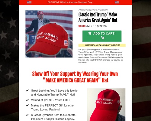Description: Trump Maga Hats Are As Popular As Ever With Conservatives, Gun Owners & Survival Traffic. Earn Up To 75% Commissions Promoting This Deep Funnel That Generates Great Epcs. Let Us Know If You Need Custom Swipes Or Tools.