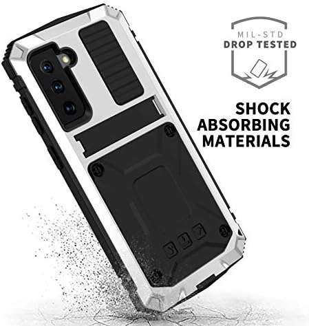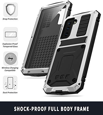 Galaxy S21 Ultra 5G Metal Case with Screen Protector Cover, Armor Heavy Duty Hybrid Aluminum Shockproof Military Shockproof for Samsung Galaxy S21 Ultra 6.8 inch 5G – Silver, S21 Ultra