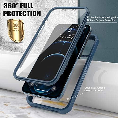 GOODON iPhone 12 Pro Max Case with Built-in Screen Protector,Pass 20 ft. Drop Test Military Grade Shockproof Clear Cover 360 Full Body Protective Phone Case for Apple iPhone 12 Pro Max Blue