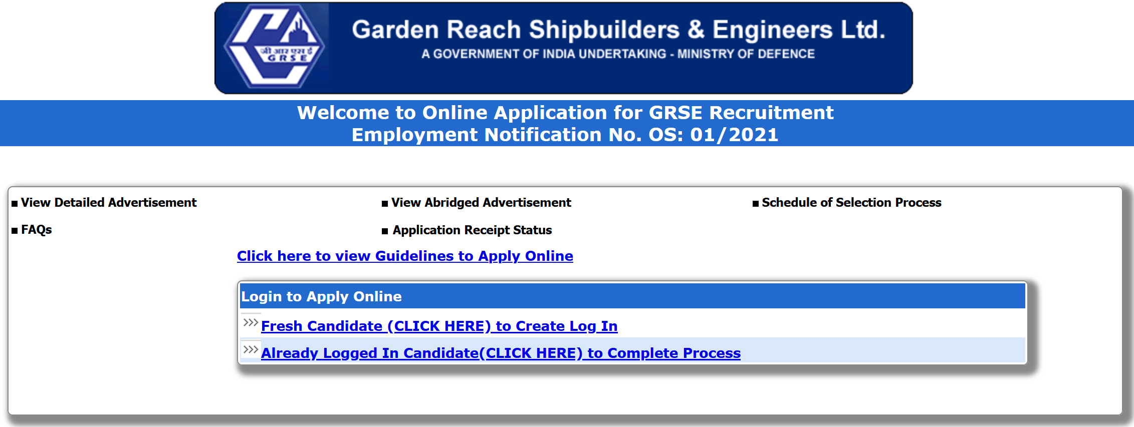 Eligible candidates have to submit their online application through GRSE Online application portal (jobapply.in/grse2021os1/). The last date for registration of online applications is 22/07/2021 up to 23:59 Hours.