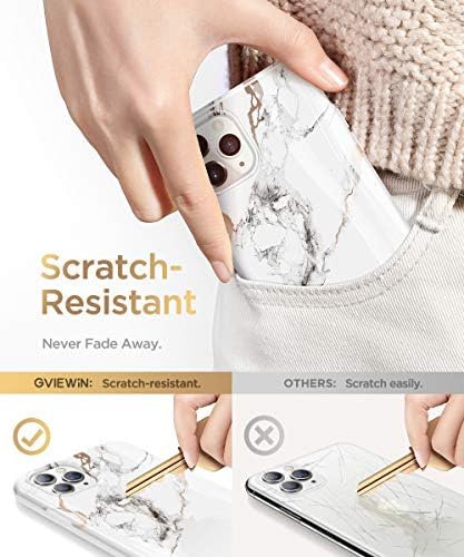 GVIEWIN Compatible with iPhone 11 Pro Max Case, Marble Slim Thin Glossy Soft TPU Rubber Gel Phone Case Cover Compatible with iPhone 11 Pro Max 6.5 Inch 2019 Release (White/Gold)