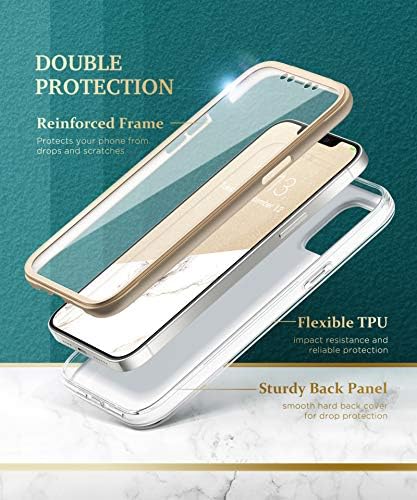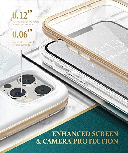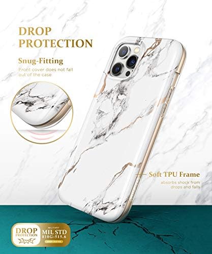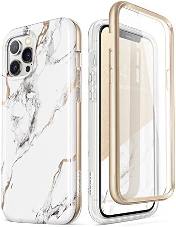 GVIEWIN Compatible with iPhone 12 Pro Max Case 6.7 inch 2020, Women Slim Marble Shockproof Cover with Full-Body Protection, [Built-in Screen Protector] for iPhone 12 Pro Max Phone Case (White/Gold)