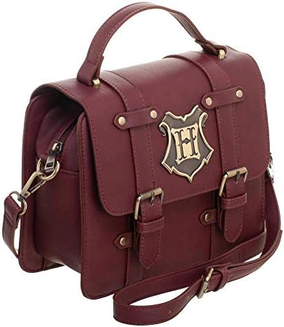 Celebrate your love for the wizarding world of Harry Potter with this satchel purse. The Hogwarts emblem is displayed proudly on this handbag?s flap and the bronze finish gives it a stylistic shine. Keep all your valuables safe with this satchel?s double closure. The main compartment features a zipper closure and the top flap folds over securing everything inside with a button closure. Harry Potter purses will always be collectible pieces of fan merchandise which make this satchel handbag the perfect addition to your purse collection.