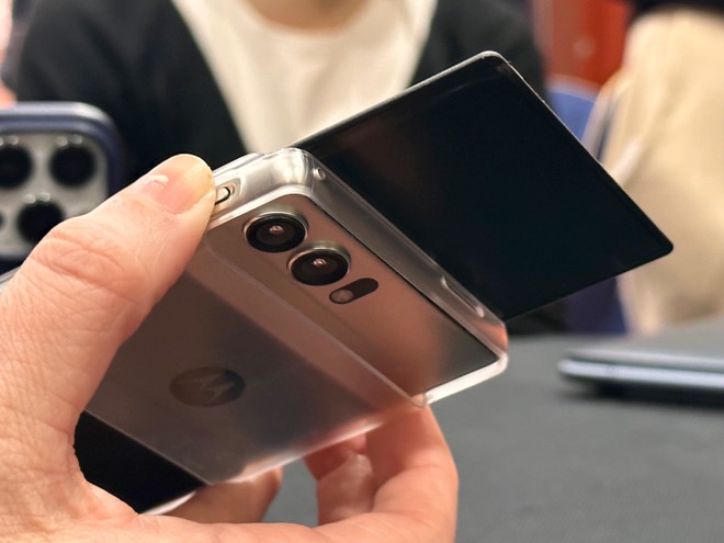 Also interesting is the solution that Motorola has thought up to move the Plastic OLED screen to the rear and which does not relegate it to a useless part of the body but makes it active. In fact, the rolled up screen ends up behind the phone and allows you to see notifications, calls and more. At the moment, in this model, the rear touch screen is not enabled via software but it is not excluded that it can then allow deep interaction, perhaps with Motorola’s advanced AOD.