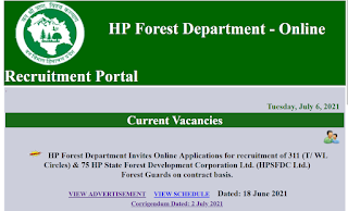 ✅ How to Apply: Eligible Persons apply online through HP Forest Online Recruitment Portal (forp.hp.gov.in) from 6th July 2021. The last date for registration of online applications is 19/08/2021 till 5:00 PM.
