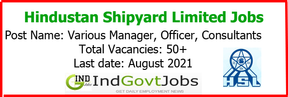 HSL Recruitment 2021 Apply Online 53 Vacancies | hslvizag.in: Hindustan Shipyard Limited (HSL), Visakhapatnam – 530005 is looking for dynamic and result oriented personnel for recruitment of following Manager level positions on contract basis / permanent absorption basis. The HSL Recruitment 2021 online registration process will be start from 23rd June 2021 and scheduled to end on 20th July 2021 / 10th August 2021 / 30th August 2021.