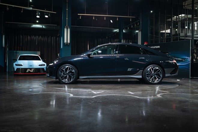 Also in the rear, aerodynamics is the protagonist of the shapes of the two spoilers, one upper and one integrated into the tail line. The first takes care of cleaning the flows coming from the roof of the car (and is embellished with a particular play of LEDs) while the smaller one, lower, incorporated in the tail, reduces the vortices coming from the sides. Also on the front, the two black “vanes” on the sides of the bumper convey the air towards the wheel well and at the same time clean the air masses which will then wrap around the sides. Last but not least, the door handles that are incorporated into the side, perfectly flush, as also seen on the Ioniq 5.