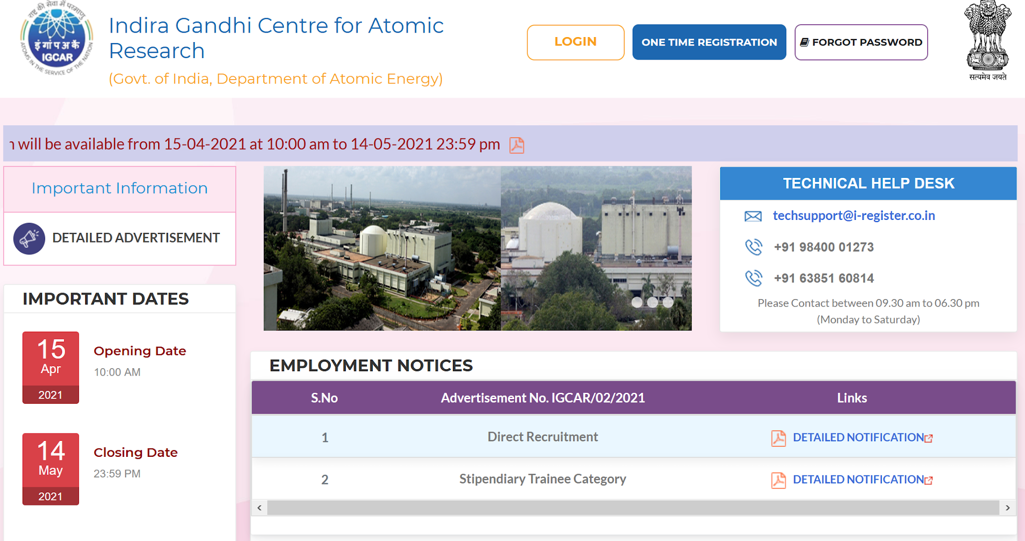 ✅ Apply: Eligible candidates ought to apply on-line by IGCAR official web site (igcar.gov.in) from 15th April 2021. The final date for registration of on-line functions is 14/05/2021 as much as 23:59 PM.