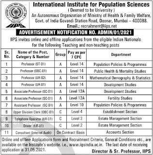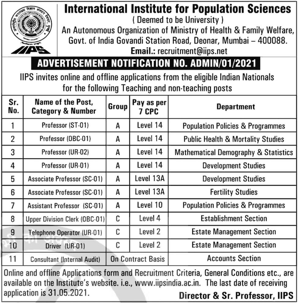 IIPS School Recruitment 2021: Worldwide Institute for Inhabitants Sciences (IIPS) Mumbai invitations purposes from eligible Indian Residents for recruitment of following School and Non Instructing positions. The final date for receipt of purposes is 31st Could 2021.