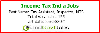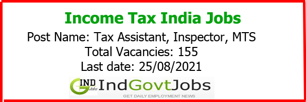 ✅ How to Apply: Eligible Interested candidates should apply online only through Income Tax Mumbai official website (www.incometaxmumbai.in). The last date for registration of online applications is 25/08/2021 up to 23:59 Hours.