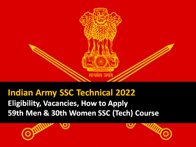 Indian Army SSC Technical 2022 Registration Open from 8th March till 6th April 2022. Check Eligibility How to Apply Vacancies for 59th Men and 30th Women SSC Tech Course.