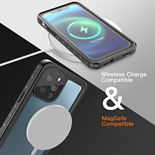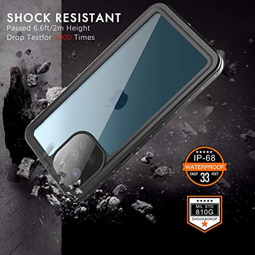 inkolelo Compatible with iPhone 12 Pro Max Waterproof Case, Built-in Screen Full-Body Protector with Floating Strap IP68 Waterproof Case for iPhone 12 Pro Max 6.7 inch Case (2020) – Matte Black/Orange
