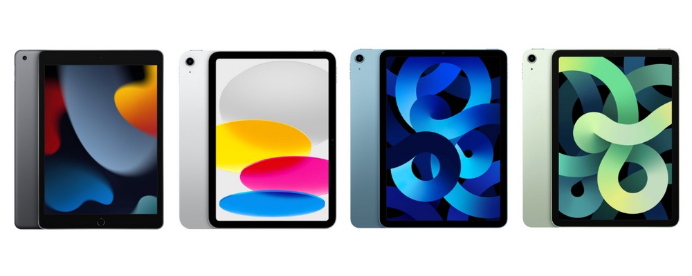 Left to right: iPad 9th gen, iPad 10th gen, iPad Air 5, iPad Air 4