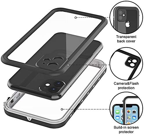 iPhone 11 Waterproof Case with Screen Protector Full Body Protector Shockproof Dustproof Dirtproof Heavy Duty IP68 Waterproof Case for iPhone 11(6.1inch) (Clear)