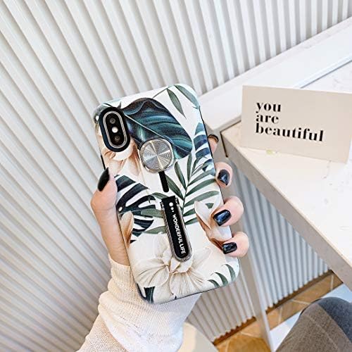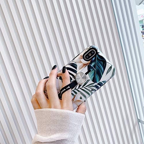 iPhone XR Case for Women,Hosgor 3D Print Flowers Finger Grip Rugged Shockproof Slim Soft TPU + Matte PC Dual Layer Finger Ring Strap Cover for iPhone XR 6.1inch(Palm Leaf)