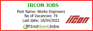 ✅ How one can Apply: Eligible candidates have to use on-line by means of IRCON Profession web page. The final date for submission of on-line functions is 18/04/2021. The Final date for printing/ receiving hardcopy of on-line utility together with copy of paperwork (at IRCON’s workplace) is 28/04/2021.