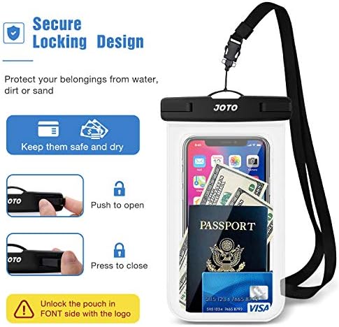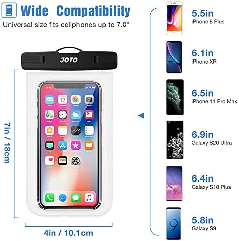 JOTO Universal Waterproof Pouch, IPX8 Waterproof Cellphone Dry Bag Underwater Case for iPhone 12 Pro Max 11 Pro Max Xs Max XR X 8 7 6S, Galaxy S20 Ultra S10 Note10 9 up to 7″ -2 Pack, Clear