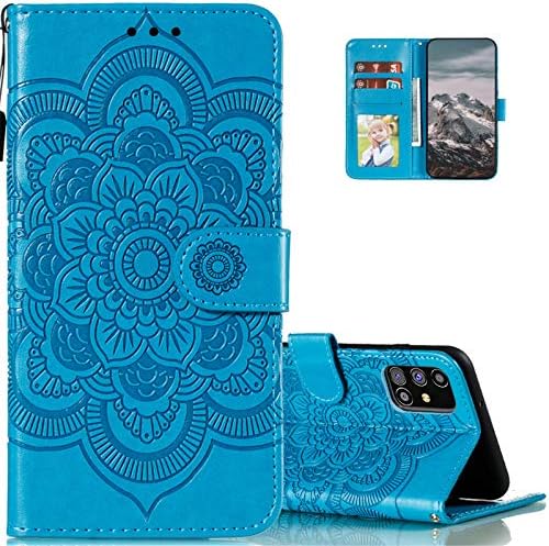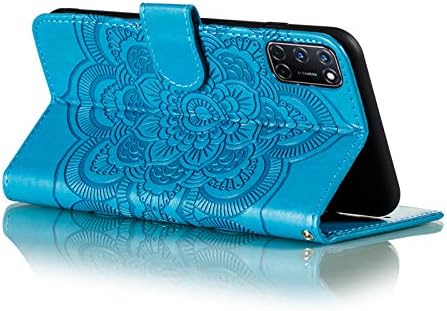 LEMAXELERS for Oppo A52 2020 Case Flip Premium Wallet Phone Case PU Leather Mandala Embossed Shockproof Cover with Kickstand Card Holder Cover for Oppo A72 / A92 2020 Mandala Blue LD