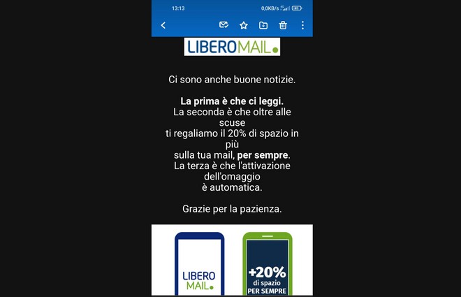 The help pages of Libero and Virgilio confirm the start of refreshments and warn users not to click on any SMS received asking for confirmation of the reactivation of the mailbox. It’s about phishing, as well as in the case of forms to be filled in online. The refreshment takes place automatically for the free user, i.e. with a free plan. As for the paid plans (Virgilio 100GB, Libero 5GB and 1TB) we read: