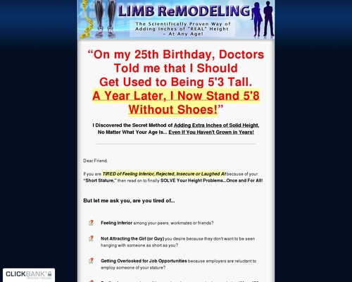 Description: Limb Remodeling Is The Latest Grow Taller And Height Increase Program That Is Scientifically Proven ~ Top Affiliates Are Earning Thousands Per Day With Our High Conversion Rates