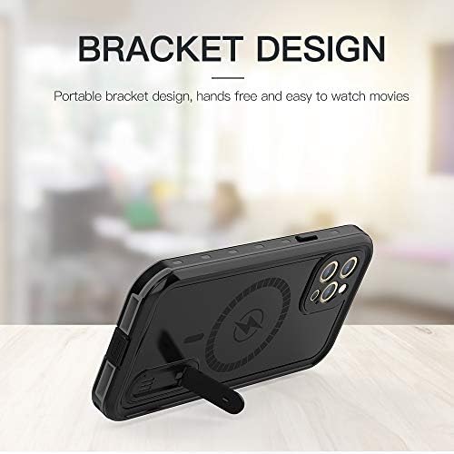 Magnetic Case for iPhone 12 Pro Max with Mag-Safe Charging,Waterproof with Built-in Screen Protector Military Grade Drop Tested Rugged Shockproof Kickstand for Apple iPhone 12 Pro Max (Black)