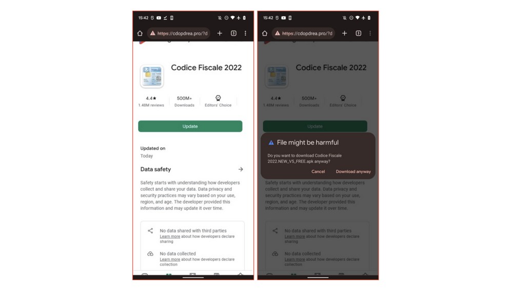 The “good news” is that for the malware to be installed – and this applies to both SharkBoat and Vultur – a manual user intervention. The bad news, though, is that the fake websites that mimic the Play Store and the alerts are so similar to the originals that it’s easy to fall into the trap. The advice is always to check the URL with extreme care before proceeding and to do not authorize updates from unknown sources.