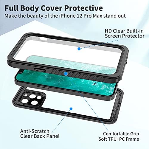 meritcase New Designed for iPhone 12 Pro Max Case Waterproof, Full Body Cover with Built in Screen Protector Heavy Duty Shockproof IP68 Waterproof Case for iPhone 12 Pro Max 6.7 Inch 2020 (Black)