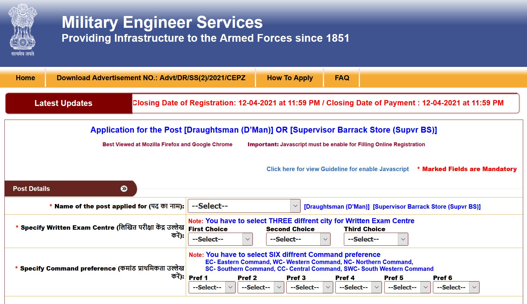 ✅ Tips on how to Apply: Eligible candidates should apply on-line by means of MES Recruitment Web site (mes.gov.in / www.mesgovonline.com). The final date for submission of on-line functions is 12/04/2021 as much as 11:59 PM.