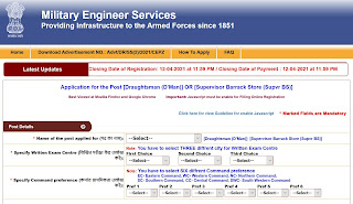 MES Recruitment 2021 www.mesgovonline.com: Army Engineer Companies (MES) Headquarters Chief Engineer Southern Command Pune – 411001 invitations on-line functions from eligible candidates for recruitment of 502 vacancies for the Draughtsman and Supervisor Baracks and Shops posts. The final date for submission of on-line registration is 12th April 2021.