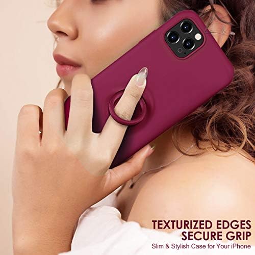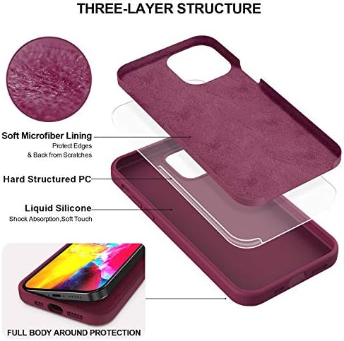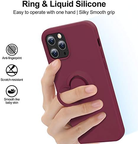 MHH Compatible with iPhone 12 Pro Max Case [Liquid Silicone with Kickstand] Microfiber Liner | Thickening Gel Rubber Full Body Protective Cover Case for Women Girls – WineRed