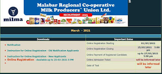 Malabar Regional Co-operative Milk Producers’ Union Restricted (MRCMPU Restricted) Kozhikoda, Kerala invitations on-line functions from dynamic younger candidates for recruitment of assorted Officers, Supervisors and Assistant vacancies. The final date for registration of on-line functions is 20th February 2021.