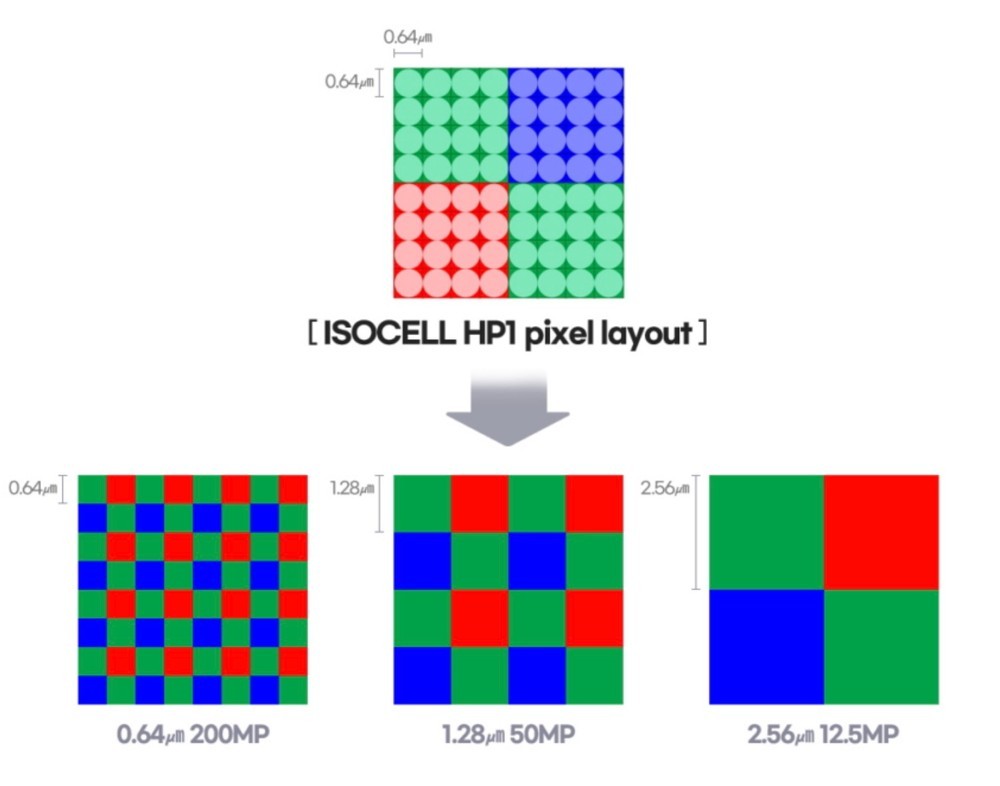 The answer lies in the technology that Samsung calls ChameleonCellthat is a pixel binning to 16 pixels (4×4), which form a ‘12.5MP single image with 2.56μm super pixel.